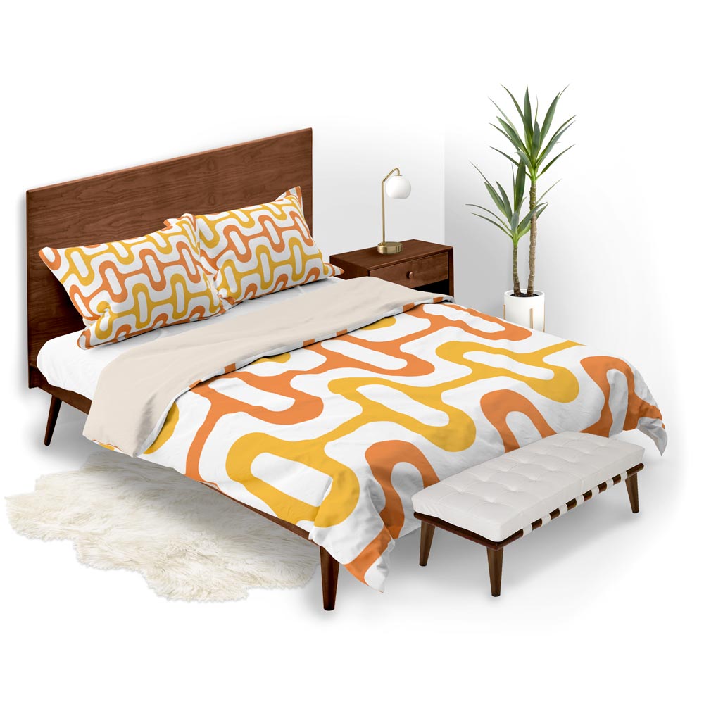 Transforming a bedroom decor into a beautiful mid-century modern oasis is a snap with these vibrant orange-yellow pillow shams. The exclusive ZipperDee design is sure to make a bold statement. These pillowcases are specially designed to coordinate perfectly with their matching duvet cover. You'll love their softness and durability, not to mention the undeniable wow factor!